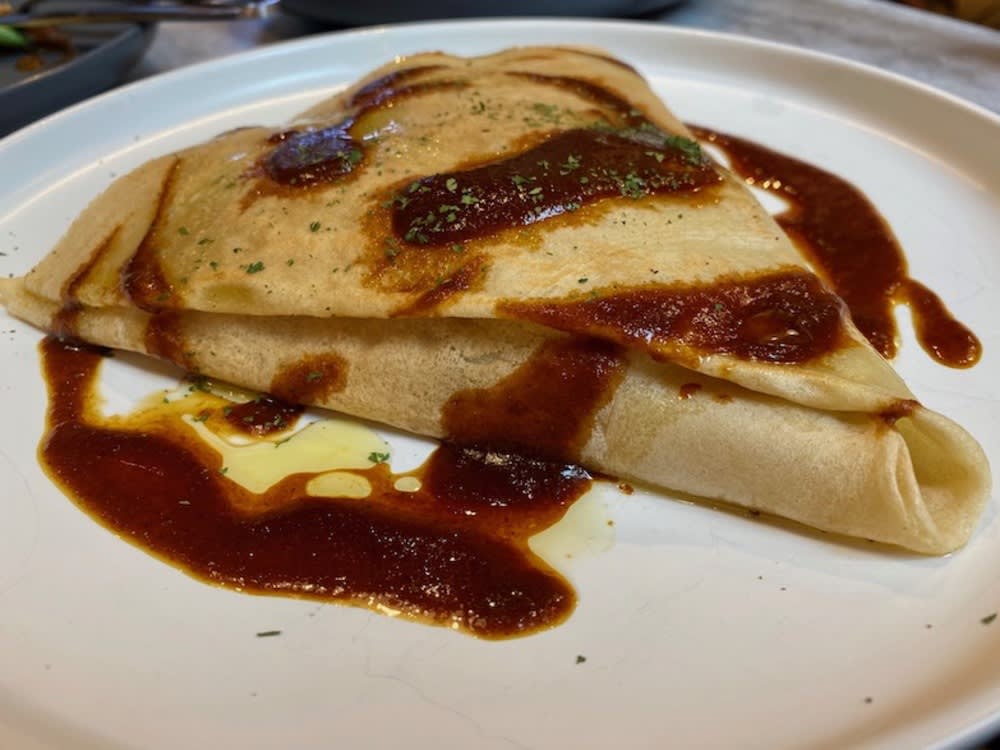 Big Feast crêpe ($118): this newly introduced savoury crêpe is filled with braised BBQ pulled pork, butter lettuce and red onion slices. We liked the mash-up of flavours but wish the filling had not been lukewarm when it arrived to our table. The crêpe itself was thicker and chewier than its authentic French counterparts.