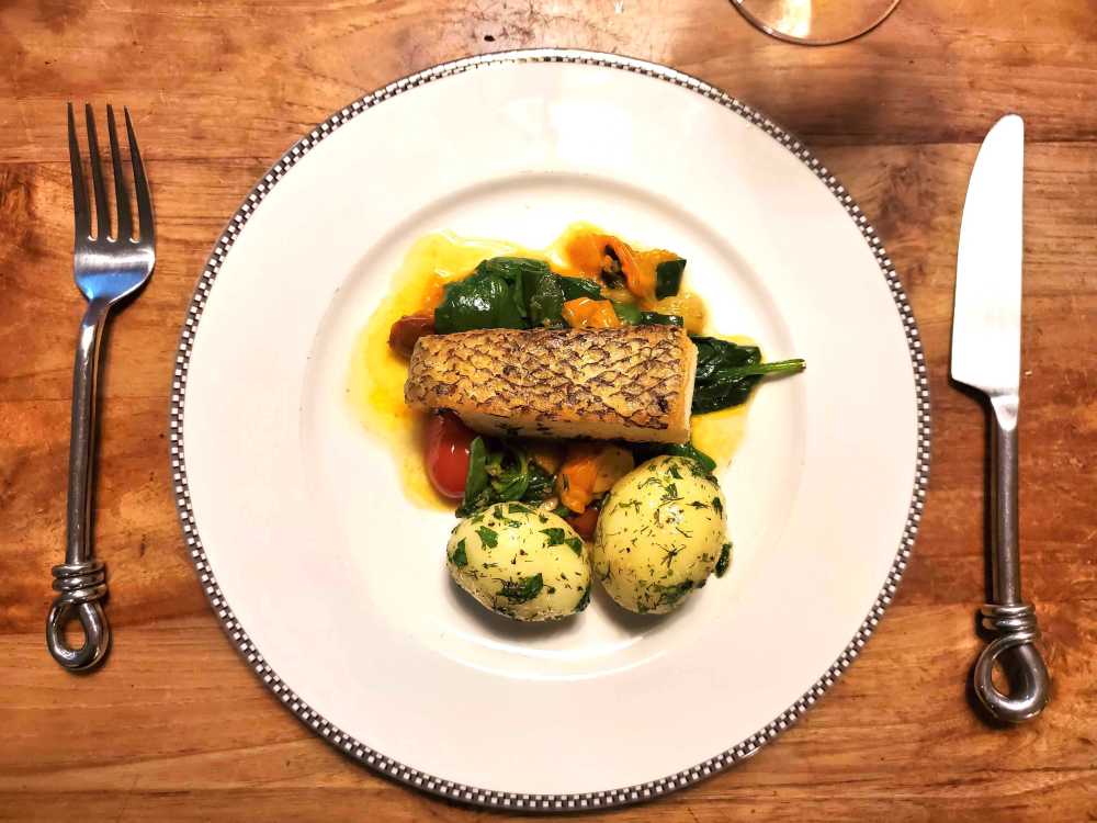 This very exclusive meal was cooked one time only for a select few by an extraordinary but little known chef, Mick Foo. Yes, another home-cooked meal, but this one was really special. The year of eating at home led to a number of trials of different deliveries of groceries. The sea bass pictured here was from Chef Shane Osborn’s catering supplier, Waves Pacific, and was pan-fried in butter and served on ratatouille alongside herbed new potatoes. WP at Home has an excellent whole leg of lamb that is a bit more pricey than others, but it was the best quality we’ve tried (and fed us for so many meals that it worked out to be good value).