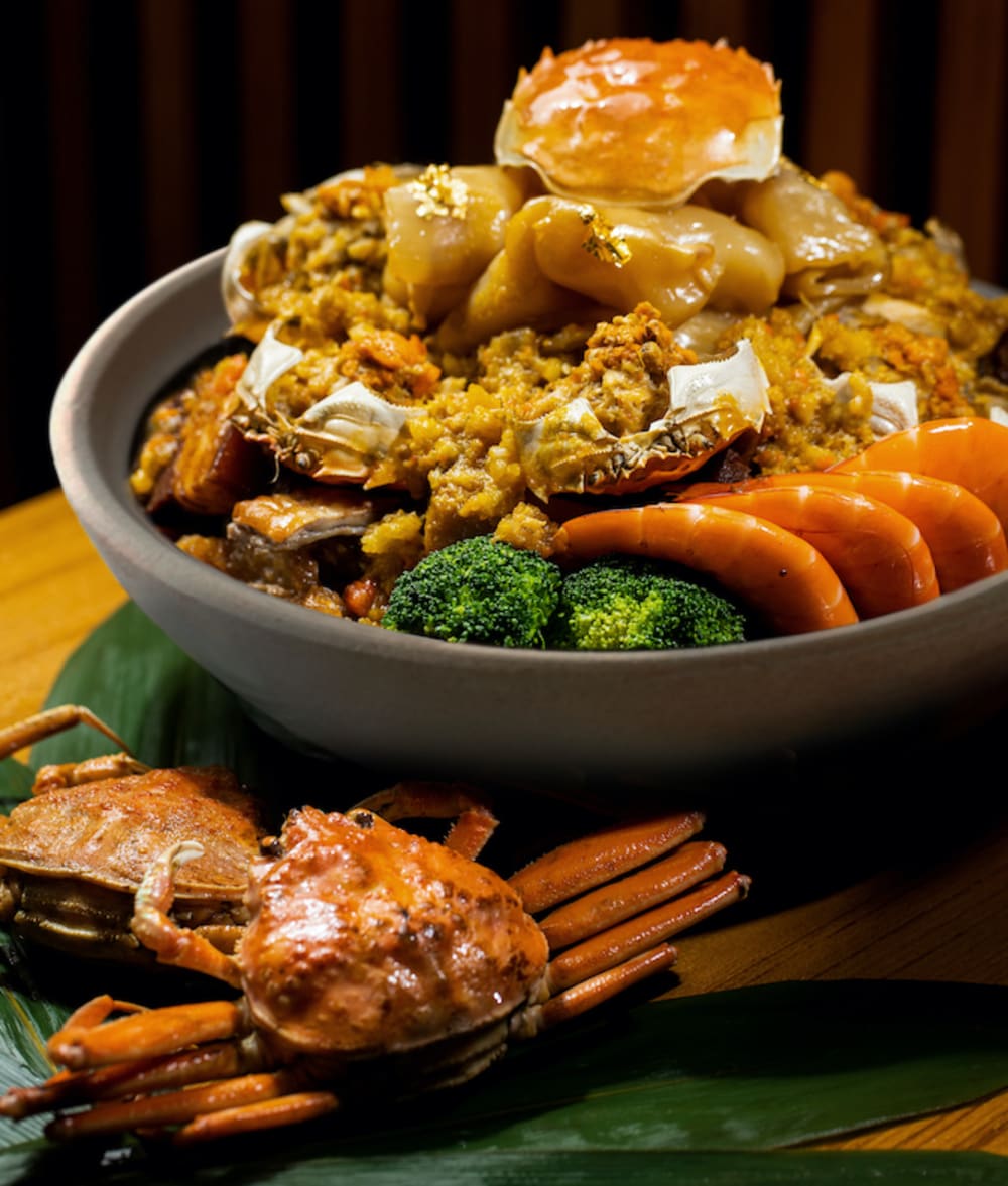 A table at glam new crab-centric restaurant Sexy Crab may be hard to come by, so we’re super excited to hear about the eatery’s delivery options for Chinese New Year, with free delivery offered until 20 February (orders must be placed at least five working days in advance). The stars of the show are the Bang for Luck hairy crab poon chois ($2,588/6–8; $3,888 for 10–12). These “big bowl feasts” are headlined by roe and meat from 12 hand-picked premium hairy crabs along with premium South African fish maw and shrimp-head sauce, enhanced with a side jar of house-made lobster sauce.