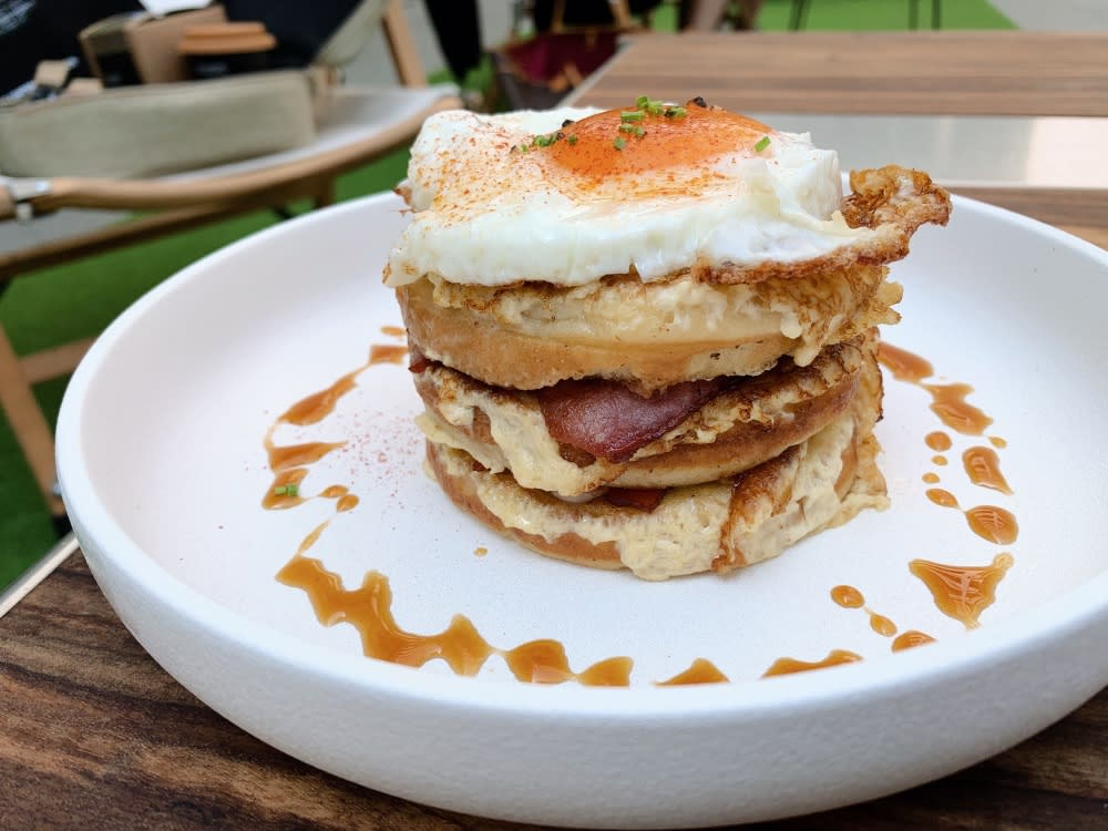 We started with the sunny-side-up pancakes ($108) and were blown away one bite in. I rarely go out for pancakes in Hong Kong because it’s been so hard to find good ones. I have no idea who came up with the recipe here, but if you read this, please accept my thanks! My friend and I both agreed this was our favourite dish. The pancakes were fluffy yet substantial and moist, and the batter just tasted really eggy and delicious. In addition, the fact that the sunny-side-up egg had super-crispy edges was the cherry on top. I can’t wait to come back for this!