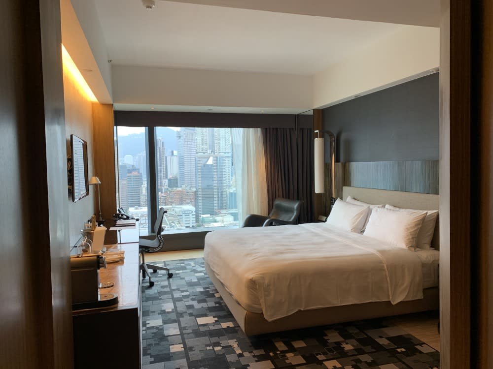 I have stayed at Hotel ICON before and adore the modern, eco-conscious design of the ICON 36 rooms. Upon entering, there’s a hallway leading to the room, a large, built-in closet covered by a sliding wooden door and a curvy wooden wall separating the bathroom, giving the space a sleek touch. A king-sized bed and decent-sized workspace greeted us, with a partial view of the harbour.