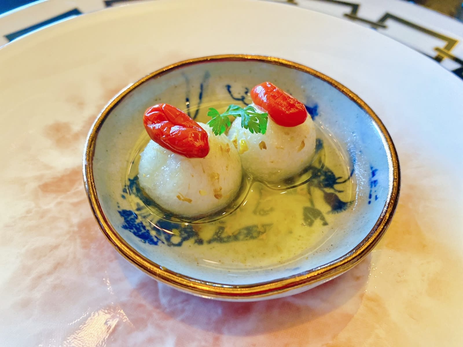 The flaky, delicate palmier is a speciality of Chef Li, made famous during his time at MGM Macau. The fried milk roll is another signature; this one is light and crunchy and has a creamy centre. Our favourite, however, was the cream-filled mango mochi, which is on the lighter side and accented with fragrant fresh mango.