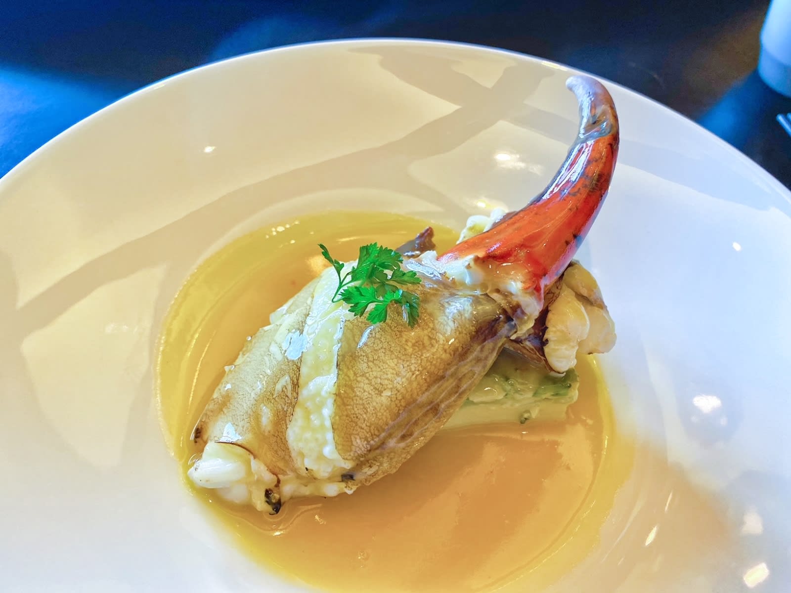 The poached mustard greens ($280/person), simmered in a comforting chicken soup infused with dried shrimp and topped with conpoy, was a luxurious way to up our vegetable intake. We especially liked the starchy contrast provided by the Jerusalem artichoke, which soaked up the flavours of the broth.
