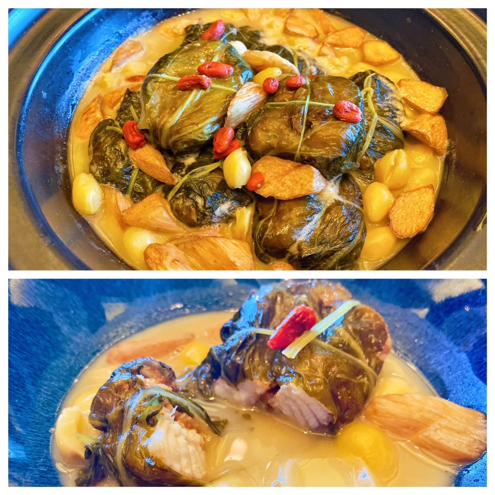 The minced fish soup ($220/person) is a soothing bowl filled with hand-sliced fish, wood fungus, tangerine peel and crushed pine nuts. The soup is creamy and packed with collagen, thanks to the slow-boiling process that extracts all the richness out of the fish. We enjoyed the crunch of the pine nuts and wood fungus against the silkiness of the fish.