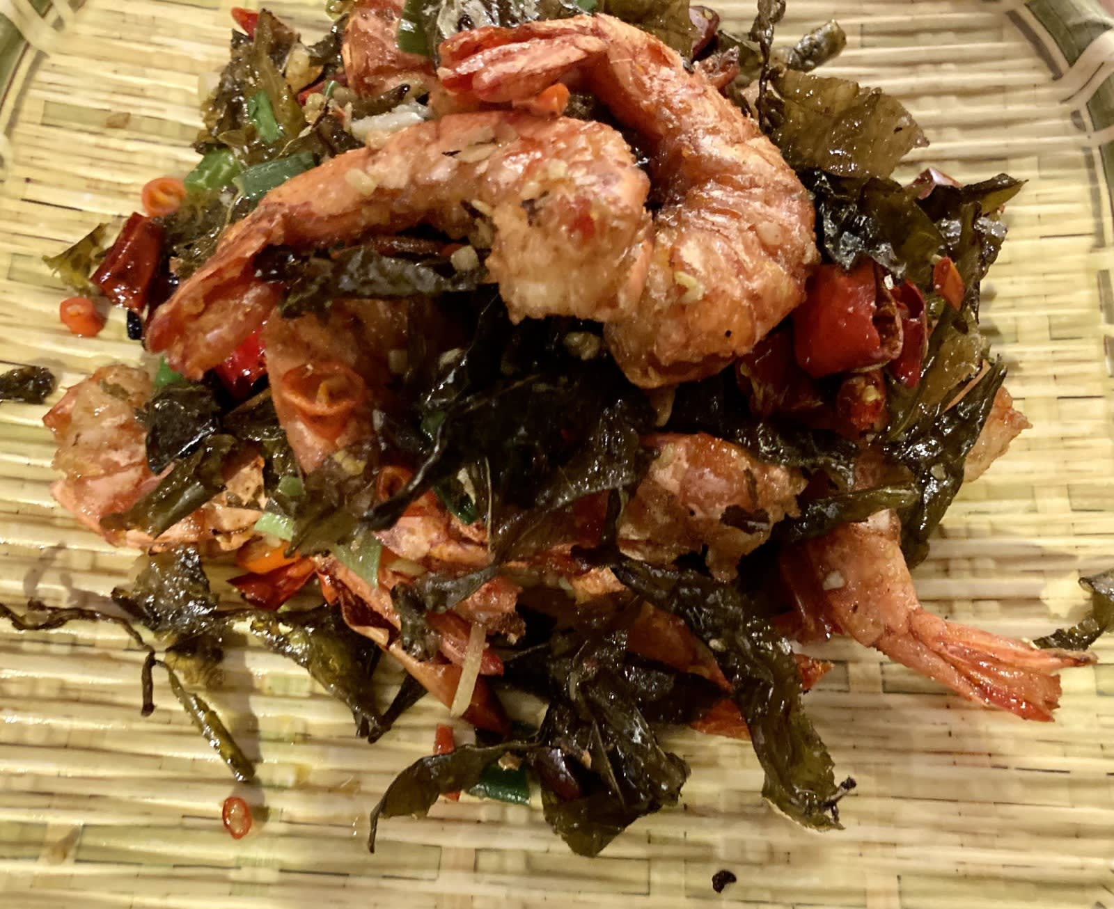 Taste-bud heaven. Your faves: shrimp with tea leaf, pudgy shrimp fried so hot, they peel crisp like potato chips. Stir-fried sautéed preserved pork with dried radish, the delicious salty pork almost a jerky contrast to the chewy-crunchy-dried radish. Stir-fried smoked Hunan-style beef, like bresaola but with the comforting scent of campfire smoke. So cheap it’s like they’re paying you.