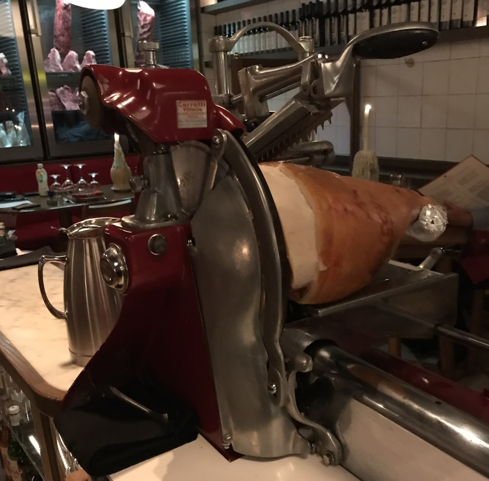 As you sip your Prosecco, you eye the interior, which bears no relation to any restaurant you’ve ever visited in Italy. It actually seems to be a riff on the Bronx Italian restaurant in The Godfather where Michael Corleone shoots Virgil Sollozzo and Captain Mark McCluskey. Old-fashioned cleavers hang on the wall. There’s a pleasant sense of impending bloodshed that is just right given the meaty meal ahead. The place would be apropos for mob hits.