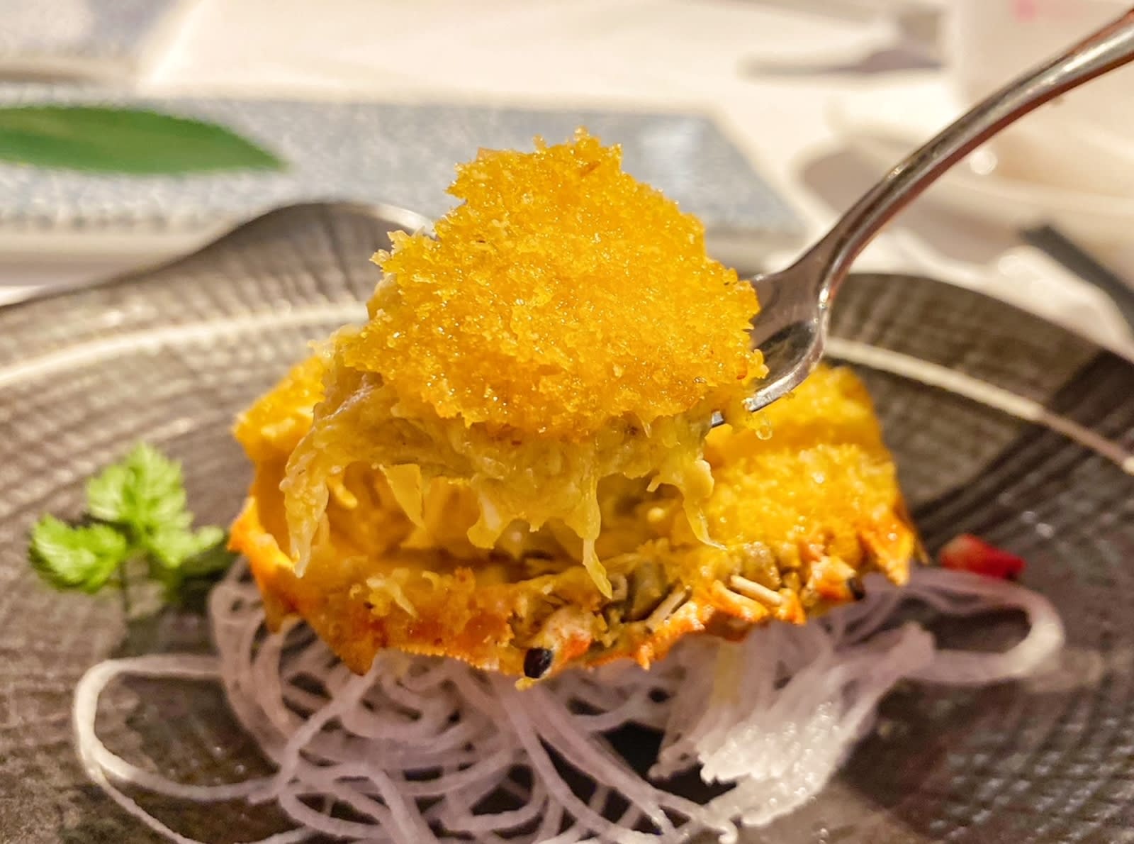We wanted to commence this year’s hairy crab season in style with the full-on nine-course golden autumn hairy crab tasting menu ($888/person) at Greater China Club. The multi-course extravaganza features creamy crab roe in each dish under the curation of Executive Chef Chan Wai-Teng. The youthful chef graduated as Master Chef in 2019 from the renowned Chinese Culinary Institute and has won several accolades at Chinese cooking championships. He most recently headed the banquet department at three-Michelin-starred The 8 in Macau before joining Greater China Club.
