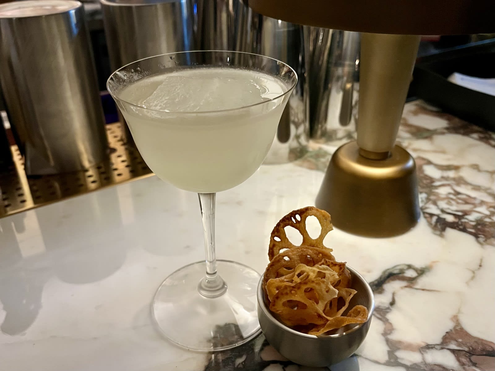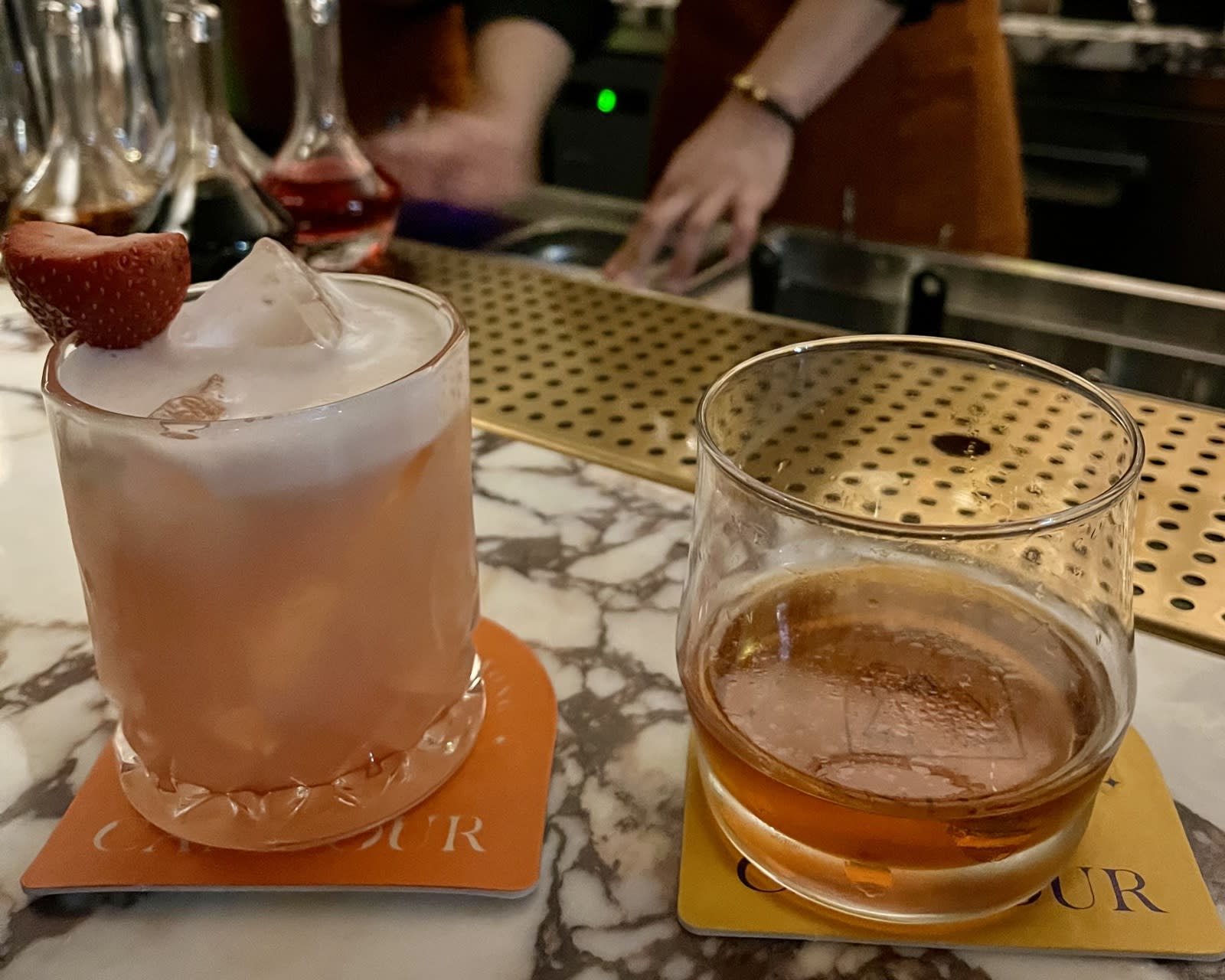 Runnin’ ($128) is another fresh cocktail with a pastel pink colour derived from strawberry and rhubarb. Made with Compass Box whisky, the drink gives off the same vibe as a whisky sour but leans on the lighter side.