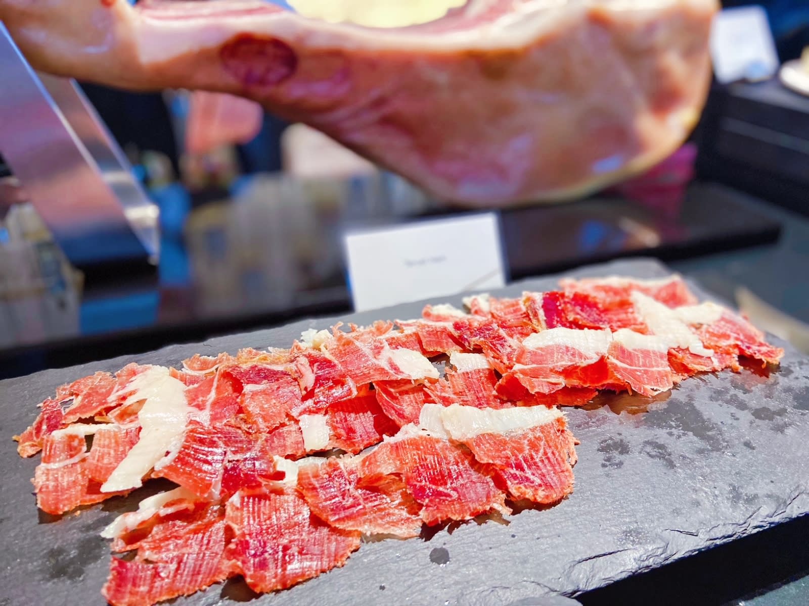 The freshly shaved Ibérico pork has just the right ratio of fat to lean meat.