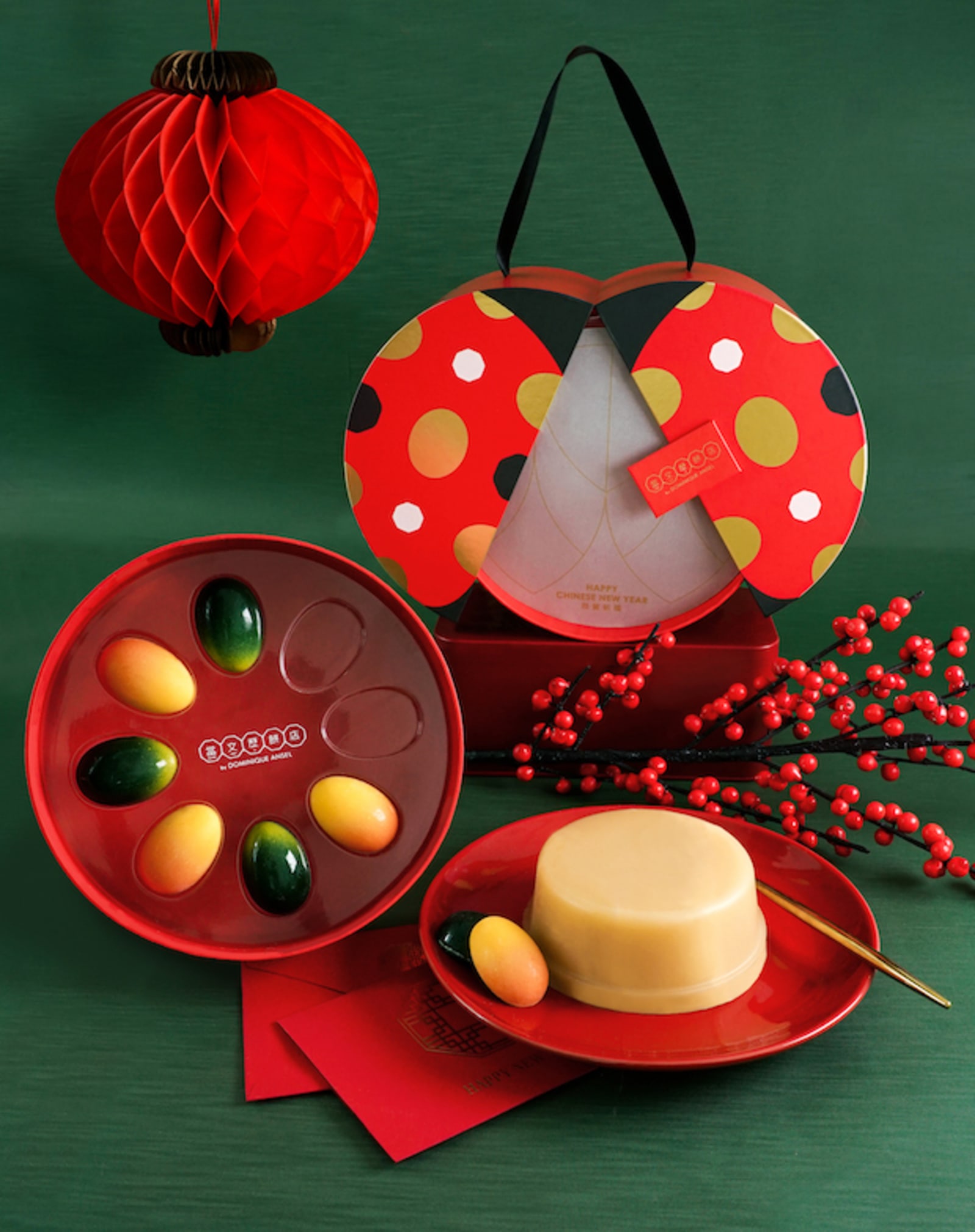 The seasonal star of Dang Wen Li’s CNY collection this year is this adorable Joyous Spring Ladybird Gift Box ($358 early bird/$398 regular). Both an Eastern and Western symbol of good luck, the ladybird-shaped gift box contains gleaming handmade chocolate bonbons in two flavours (pistachio dark chocolate and yuzu white chocolate) and, with a nod to the 852, a locally made almond-milk rice pudding. For something not as grand but just as tasty, check out the mandarin mochi buns ($48 for 2); these are mini brioche buns filled with homemade mochi and mandarin orange jam. Early-bird offers are on until 23 January, with product collection available until 6 February at DWL’s three branches around town. Order online.