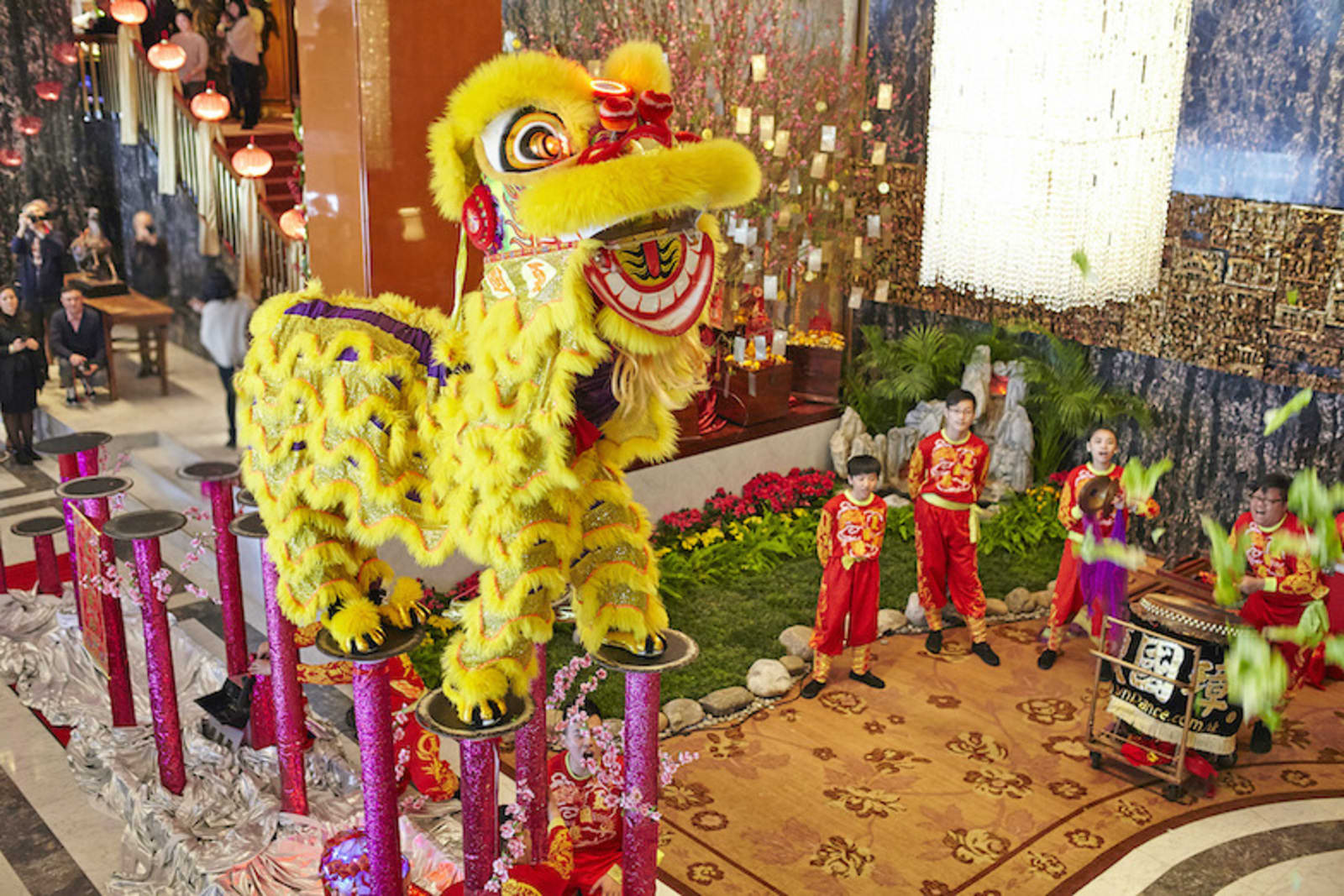 At Michelin-starred Man Wah at Mandarin Oriental, Hong Kong, Executive Chinese Chef Wing-Keung Wong has come up with a selection of celebratory dim sum and dishes that symbolise good fortune and prosperity, from braised spotted grouper fillet with sun-dried shrimp, salted egg, minced pork and ginkgo nuts to stir-fried prawns with supreme broth. The highlight of the CNY offerings this year is the aged tangerine-peel turnip cake created by Chef Wong and his master, Theresa Yiu, also known as Dashijie. The chef duo have incorporated 15-year-old dried tangerine peel from Xinhui District in Jiangmen, China, into their traditional turnip-cake recipe. If you’re dining at the hotel on the first day of the Lunar New Year, you’ll be treated to a lion dance and eye-dotting ceremony in the lobby.