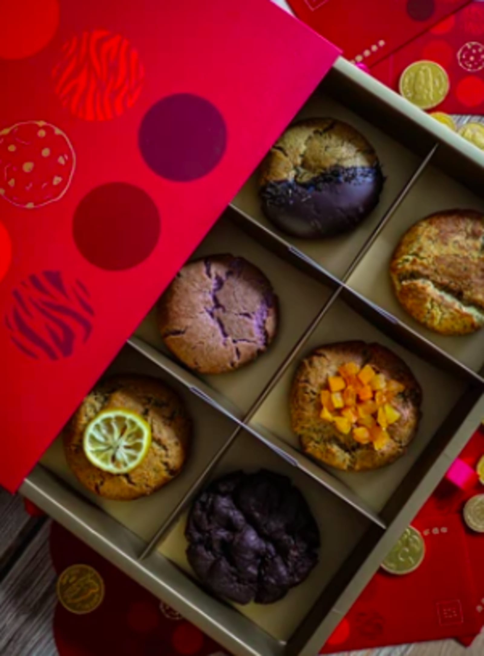 Love cookies? Love tea? Well, Cookie DPT’s CNY cookie box set ($350), dubbed Twen-Tea Twen-Tea Two, is tea inspired and includes six tea-flavoured cookies, ranging from a HK milk tea cookie, to a lemon tea cookie, to an oolong apricot cookie. Available for pre-order from 21–31 January and 2–3 February.