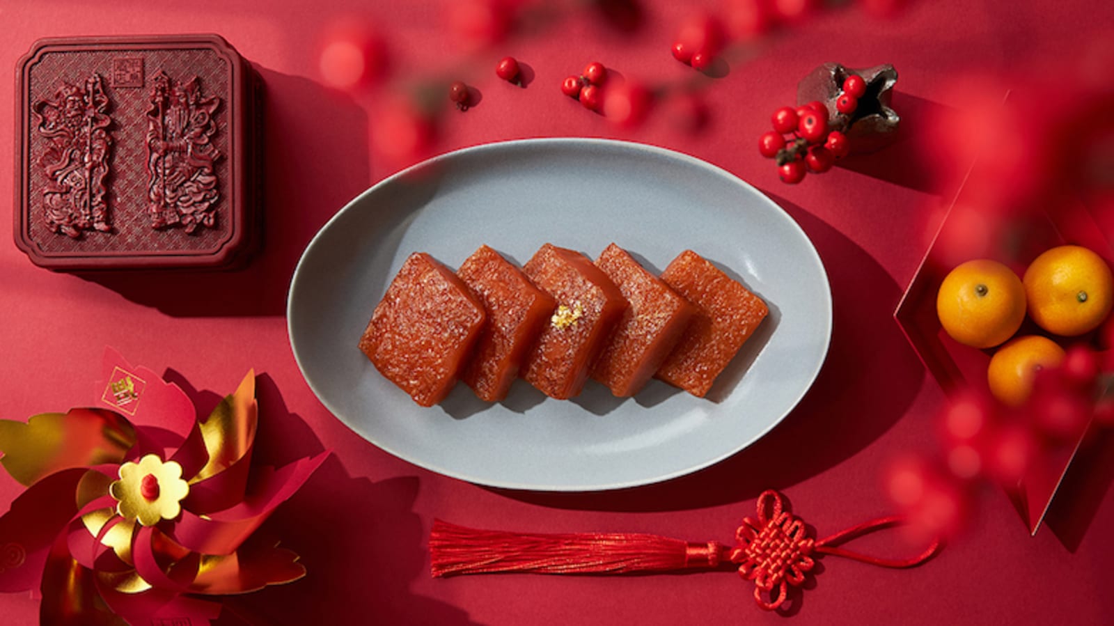 The CNY puddings crafted by The Peninsula’s Michelin-starred Spring Moon culinary team are perfect for luxury gifting. We particularly like their iconic red date pudding ($388) for its silky-smooth texture, earthy, mellow red date flavour and coconut filling. Other pudding flavours include taro ($368), water chestnut ($368) and turnip ($368). And if you’re really out to impress, the Divine Treasures Hamper ($3,688) is filled with the red date pudding alongside delicacies including dried abalone, homemade XO chilli sauce, fish maw, Hokkaido conpoy and aged Yunnan pu’er tea. Order online.