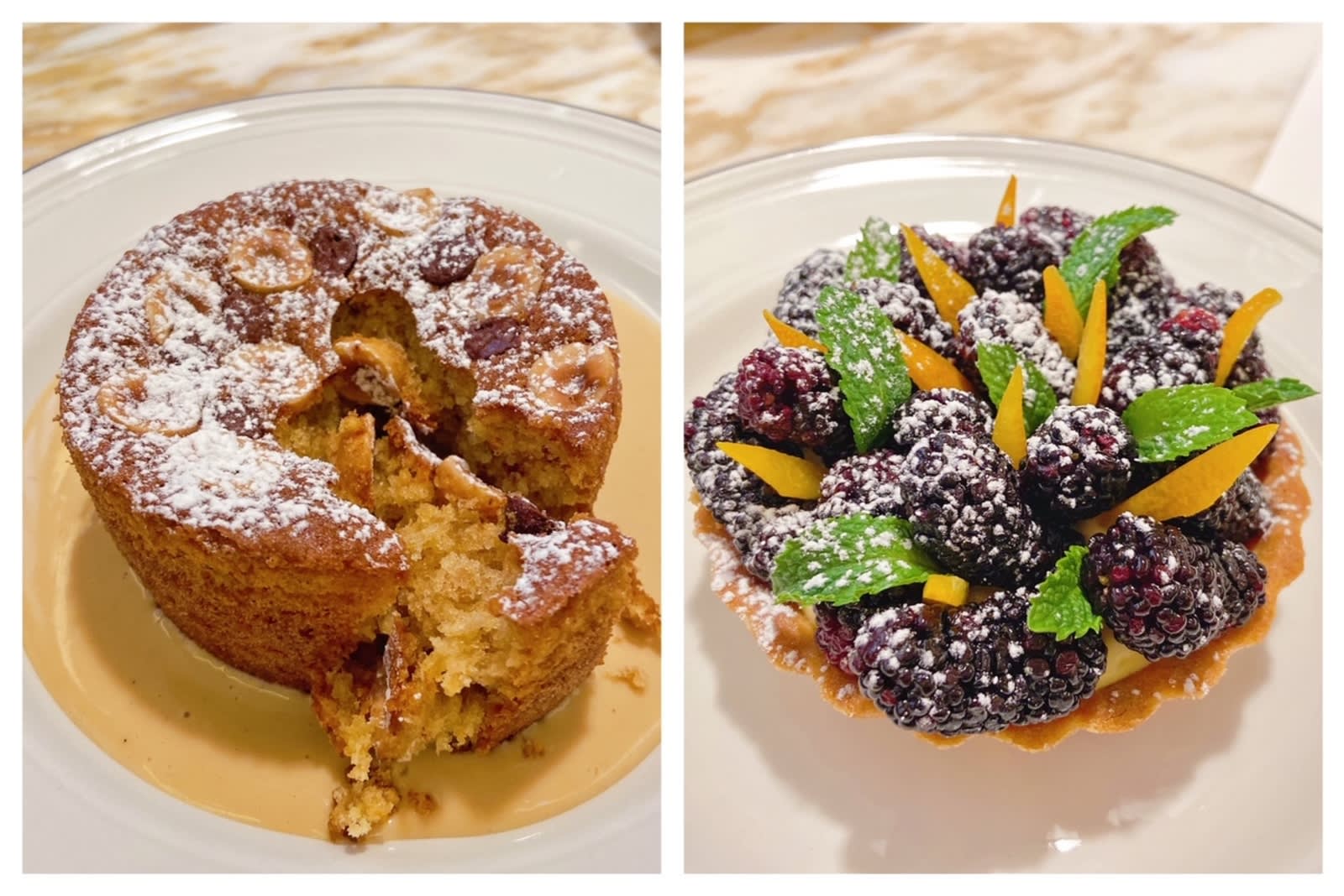 Because two desserts are always better than just one, our meal concluded with a summery mulberry tart ($118) over a bed of mascarpone cream and a crumbly hazelnut cake ($148) in a pool of Piedmont hazelnut zabaglione. The hazelnut cake feels like a warm hug on a cold day, one of the rare occasions when hazelnut is a main flavour highlight and not eclipsed by the use of chocolate.