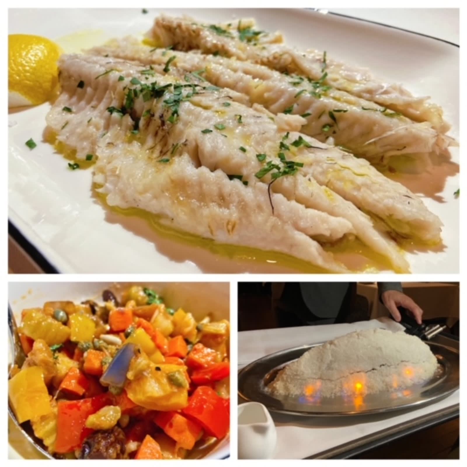 With much fanfare, the salt-baked sea bass ($438) arrived at the table under a thick crust of salt and, after a swish of alcohol, mesmerised us with a halo of fire. The fish itself, however, had a lot of bones and was quite a task to eat, with us picking out bones from each bite. The fish is accompanied by a rustic caponata that resembles French ratatouille.