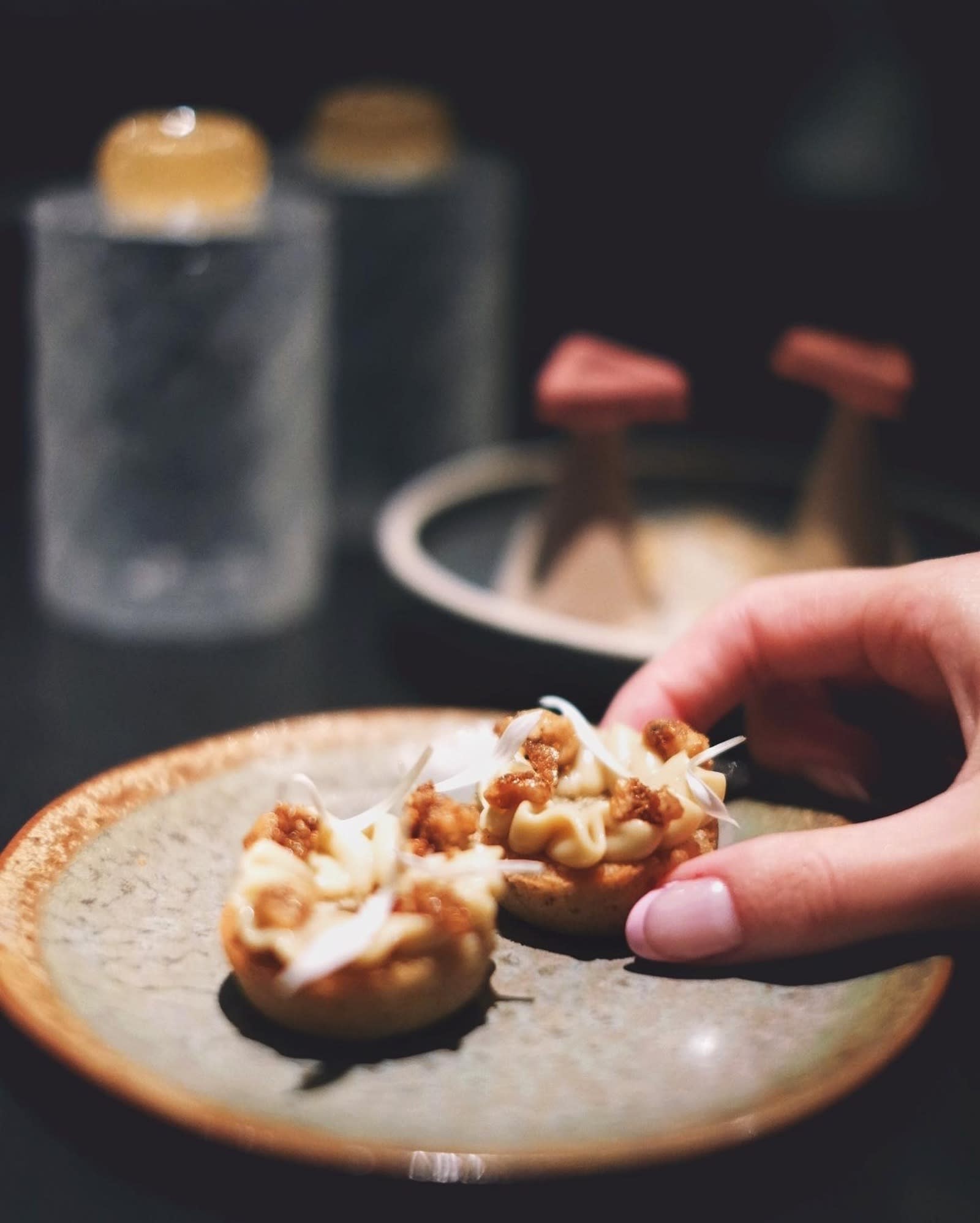 Stuffed within a roll of light and crispy paper-thin pastry is a smoked cod roe mousse dusted with leek ash. The mousse emanated smoky and briny aromas, and was gloriously smooth on the palate, creating stark textural contrasts.