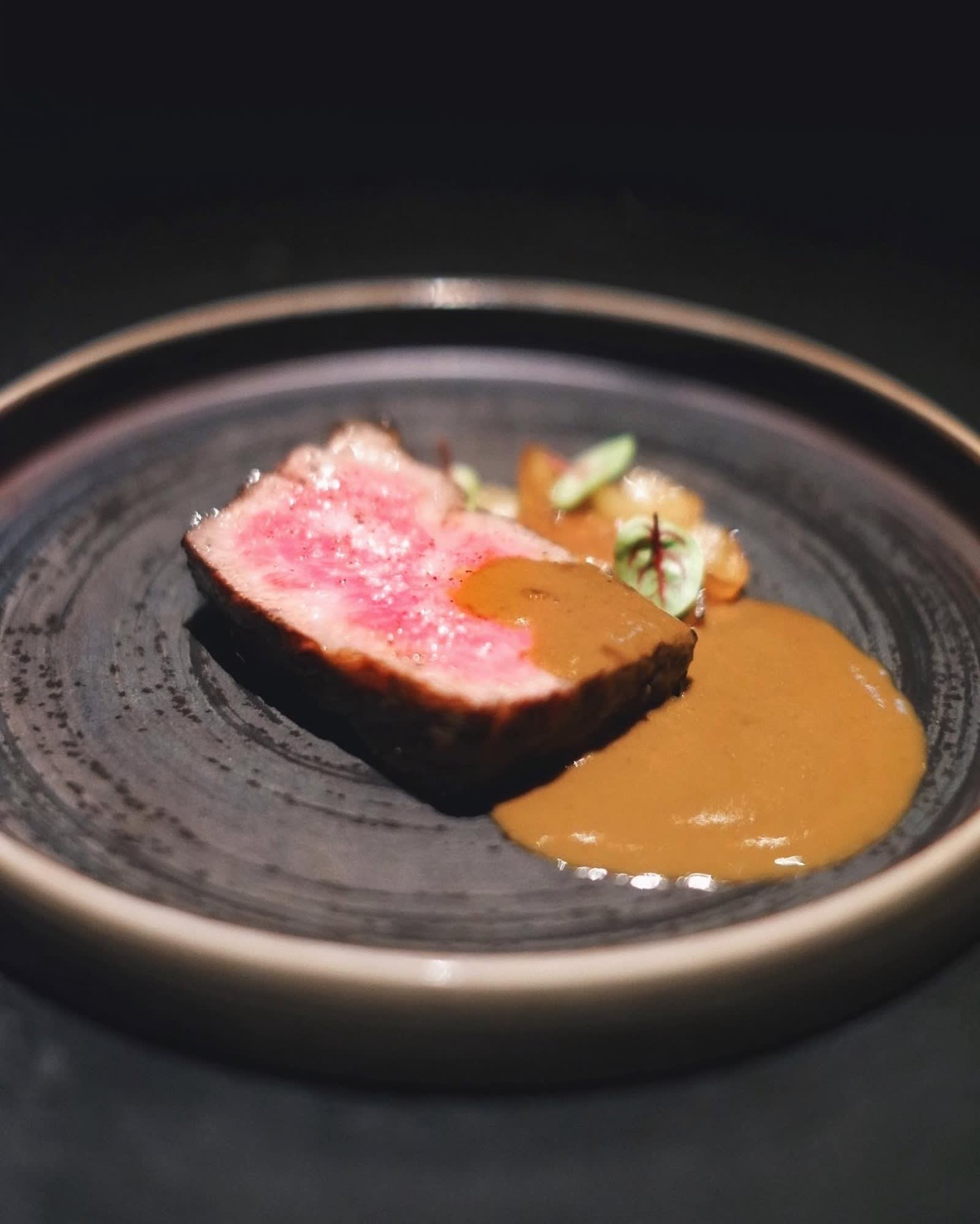 Cooked to medium rare, the beautiful slice of pink wagyu was melt-in-the-mouth velvety with a distinct meaty aroma. The sauce, made with beef bone and marrow, further elevated the flavours.