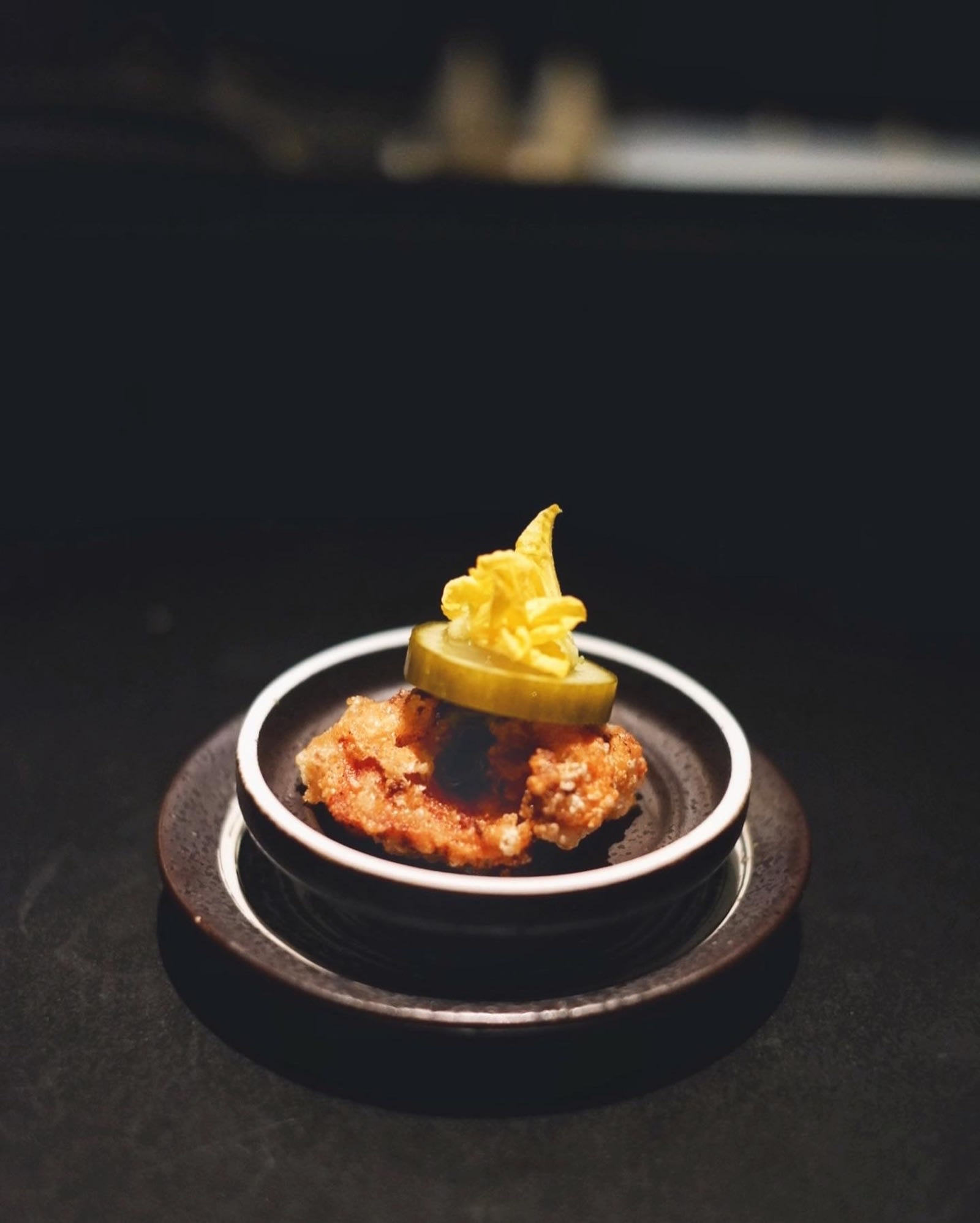 Imported from Niigata, the chicken thigh was fried to golden brown with a crackled exterior, with dense and juicy meat encased within. Marinated with buttermilk and smoked the American way, savoury juices oozed out upon each bite. Black garlic seafood sauce and half-sour pickles amped it up with a refreshing twist.