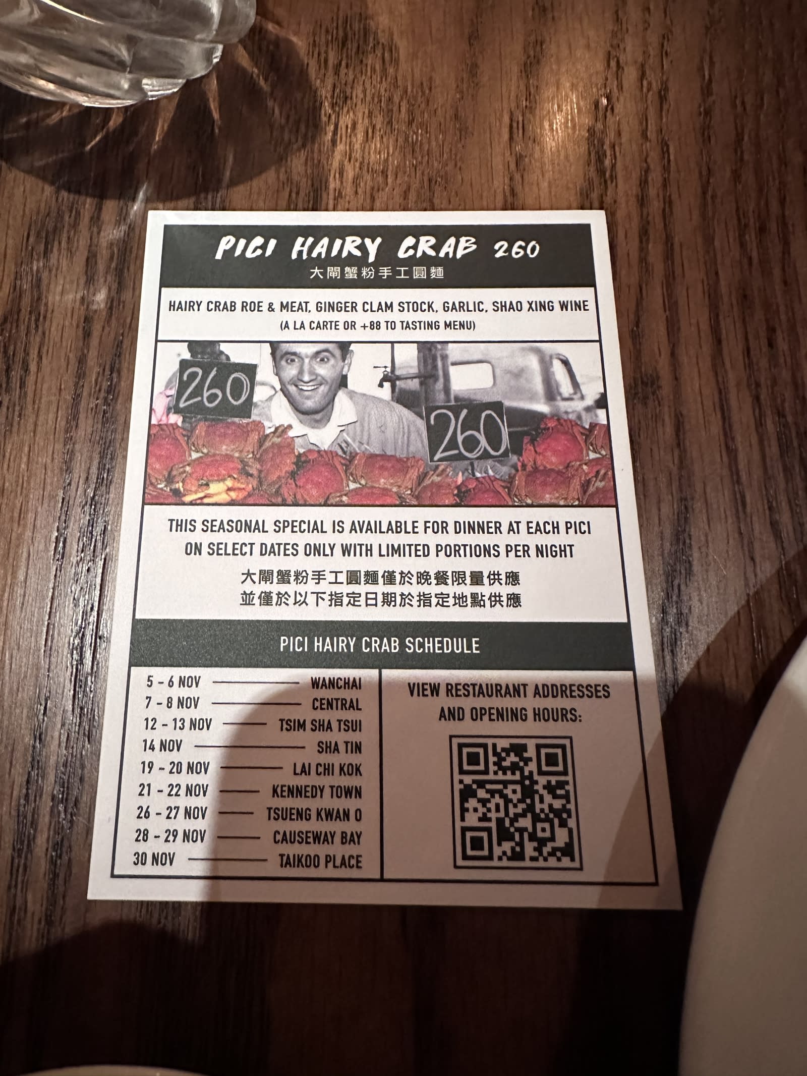 Hong Kong restaurants have been introducing their fair share of hairy crab dishes this season, but you might not expect an Italian restaurant to be amongst them. The amazing Pirata Group team, who have always been bold and innovative in their creations, have rolled out an exclusive hairy crab pasta dish at pasta specialist Pici.