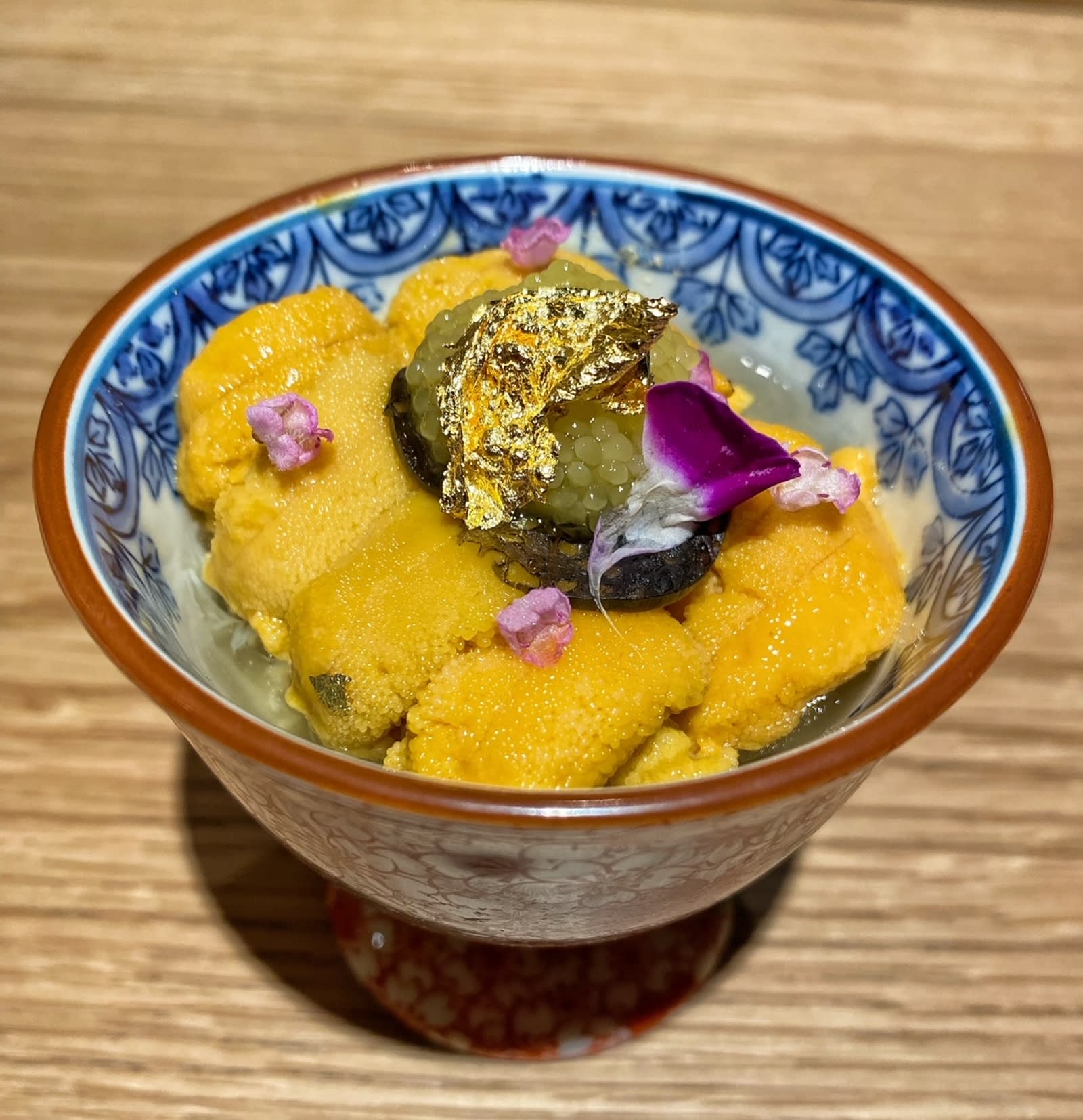 The Matsuba crab gelée, topped with Hokkaido uni, pressed caviar and sturgeon gold caviar, is a heavenly little bowl of pure indulgence. The sweet crab with creamy sea urchin is punctuated by pops of briny richness from the two varieties of caviar.