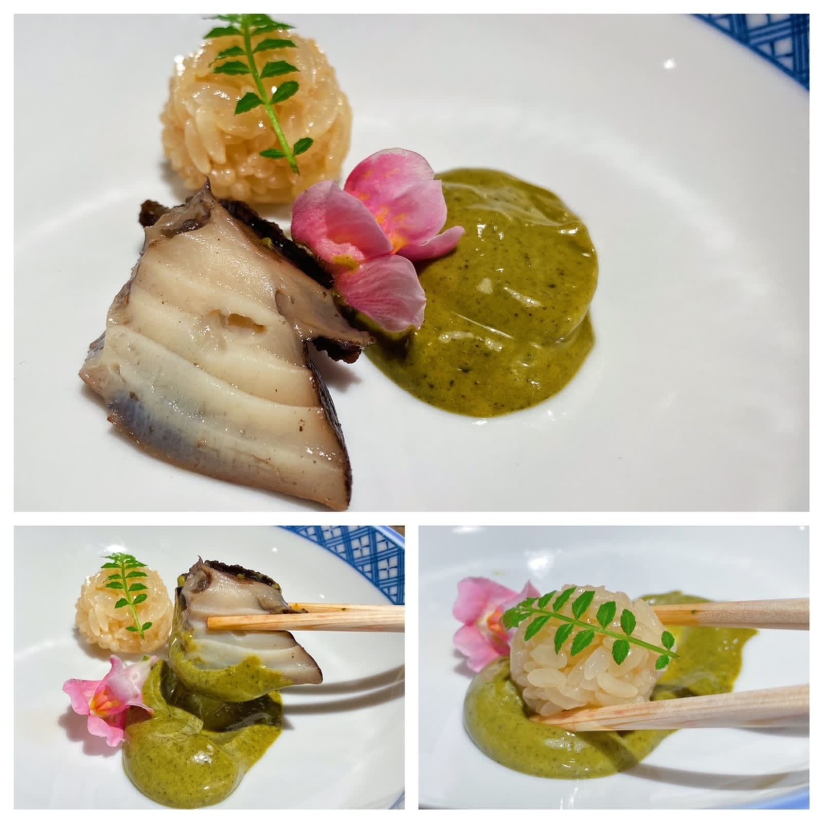 Steamed abalone is a favourite of ours, and Kushiro’s version did not disappoint. The giant red abalone, which hails from Mie Prefecture, is steamed for eight hours and served with abalone liver sauce and a tiny rice ball.
