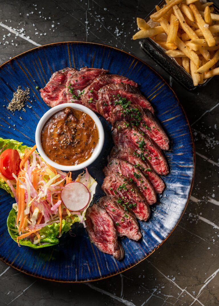 香煎牛腹扒 配 黑椒牛肉汁,田園沙律