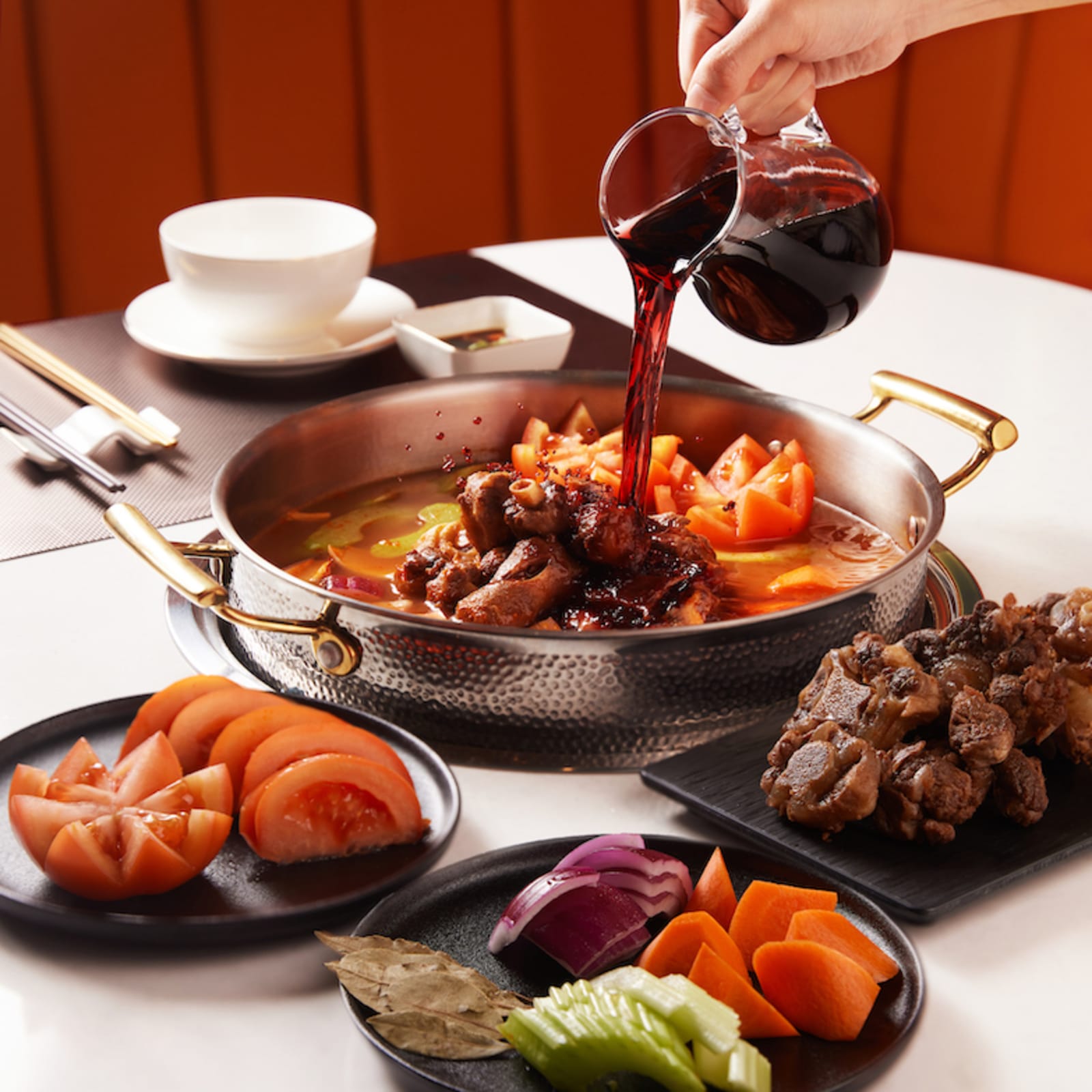 The HK hotpot scene just got a whole lot more exciting with the opening of Bino N’ Booze. Setting it apart from the rest of the hotpot pack, the trendy eatery’s four alcohol-infused signature soup bases highlight quintessential local flavours, ranging from red-wine oxtail and tomato soup, to seafood soup, to hua diao Chinese herbal soup with chicken or beef, to pig tripe and chicken in beer soup. Inventive dippers include hand-wrapped dumplings in flavours like abalone and black truffle and drunken chicken, plus hand-cut steer beef.