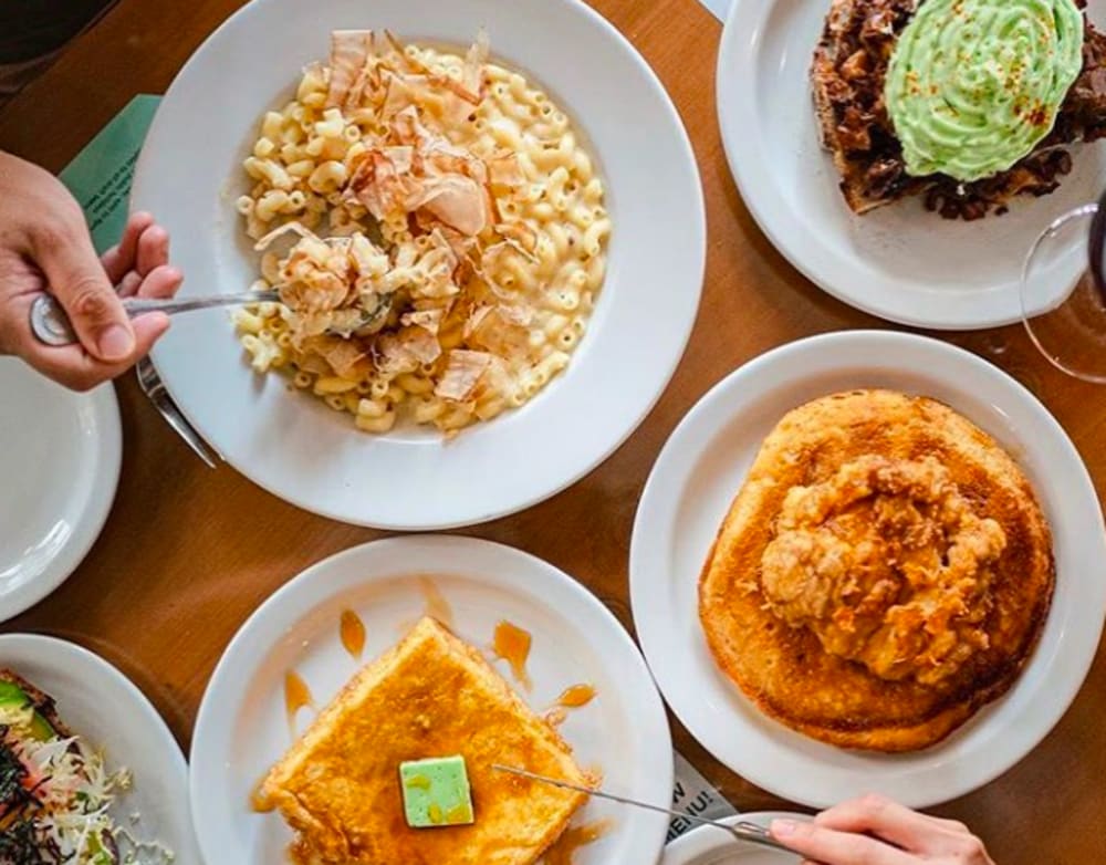 Well known for their impressive selection of craft beers, Second Draft will always have a special place in our hearts thanks to their creative East-meets-West brunch dishes and bar bites designed by acclaimed chef May Chow. We’re obsessed with the chicken hotcake ($138), which presents fried three-yellow chicken atop a dense scallion and sesame hotcake that’s drizzled with sweet beer syrup, as well as the kaya French toast ($78), fusing the Singaporean and Hong Kong breakfast classics and topping it off with a bright green dollop of pandan butter.